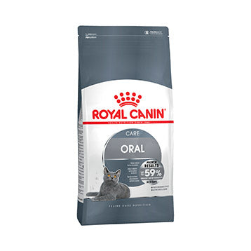 Royal Canin Oral Care for adult cats (1 to 7 years old) prone to dental tartar. Oral Care's uniquely shaped, textured and exclusive formulation helps reduce tartar formation by 59%.