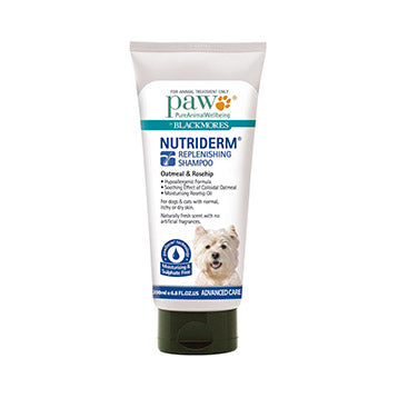 Paw NutriDerm Replenishing Shampoo is a sulphate free and soap free oatmeal shampoo that cleans without stripping the skin's natural oils.