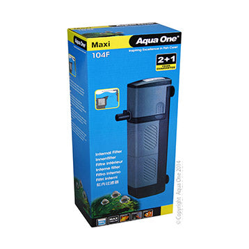 Fully submersible internal filter. Provides mechanical and biological filtration with a foam media. The 104F is suited for a maximum aquarium volume of 180 litres.